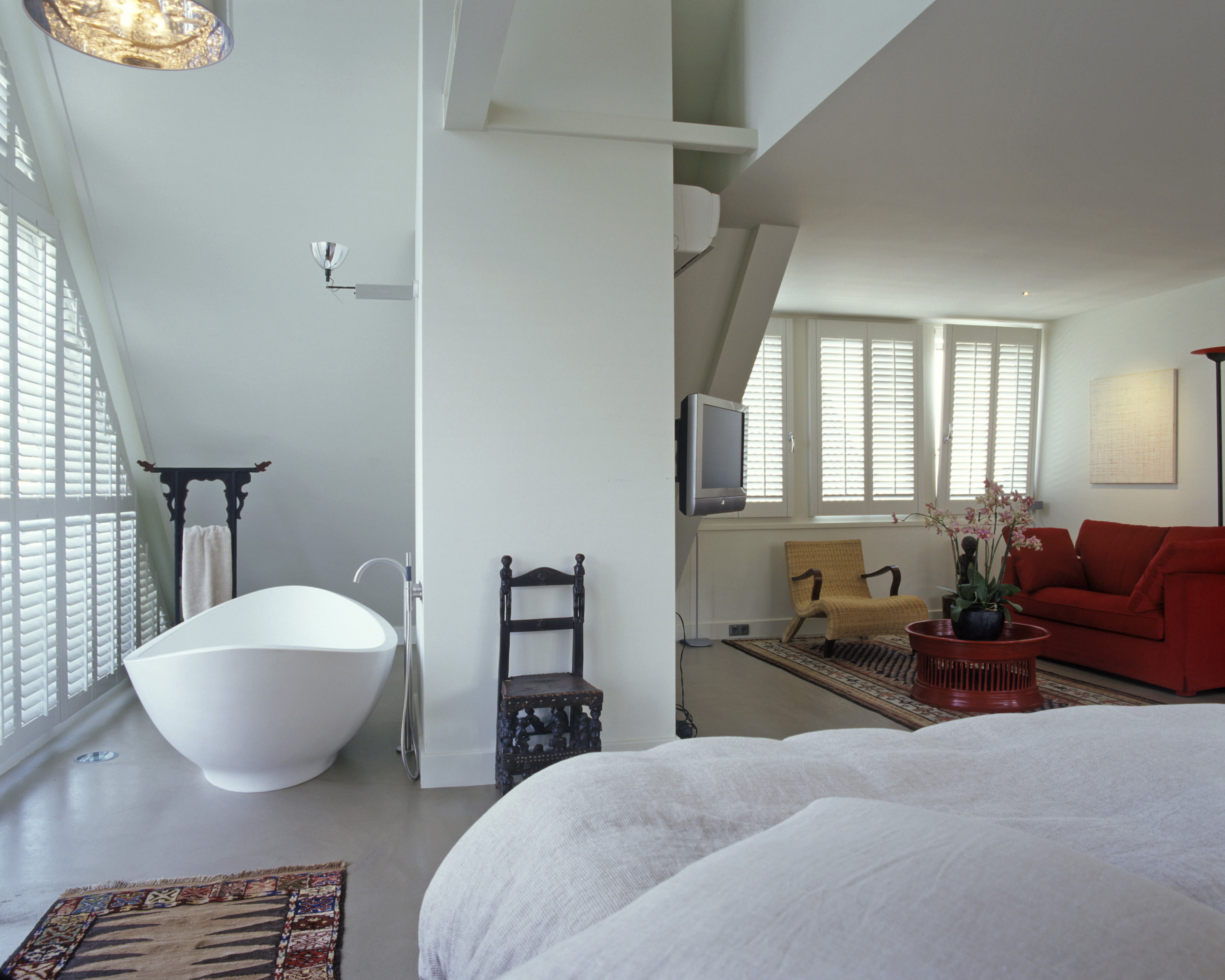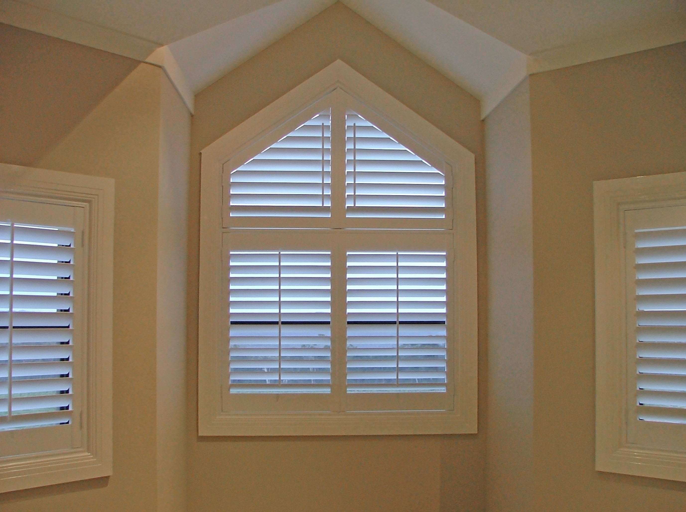 Blinds and curtains just don’t work for certain shape windows. Angled spaces can be transformed with our shutters, in a variety of materials.